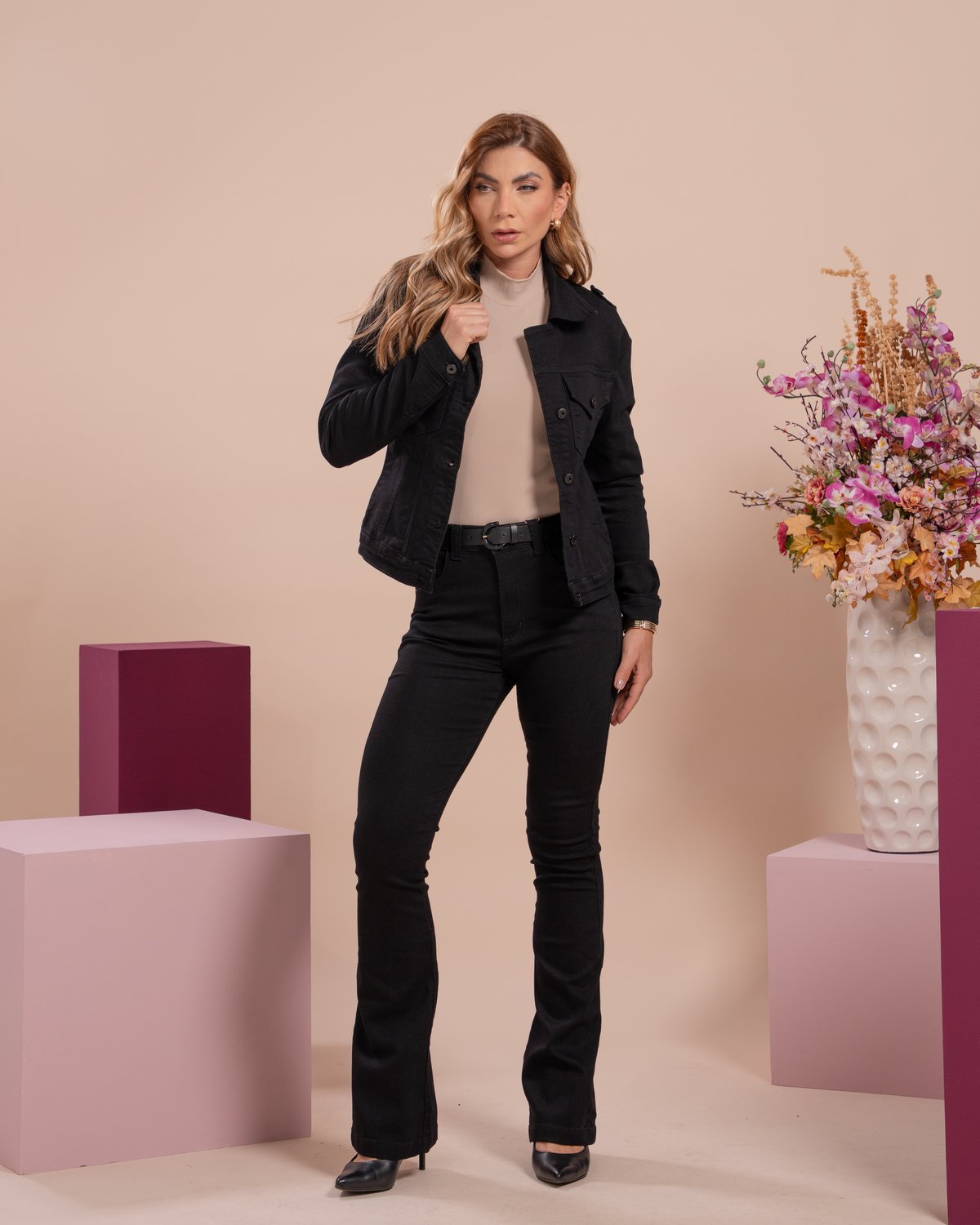 O design atemporal da calça boot cut combina perfeitamente com botas, saltos, sandálias ou até tênis, tornando-a extremamente versátil para diversas ocasiões — do trabalho ao passeio, do dia a dia a eventos informais. Detalhes como cós anatômico, fechamento por botão e zíper e bolsos funcionais reforçam o acabamento cuidadoso e o estilo moderno da peça.