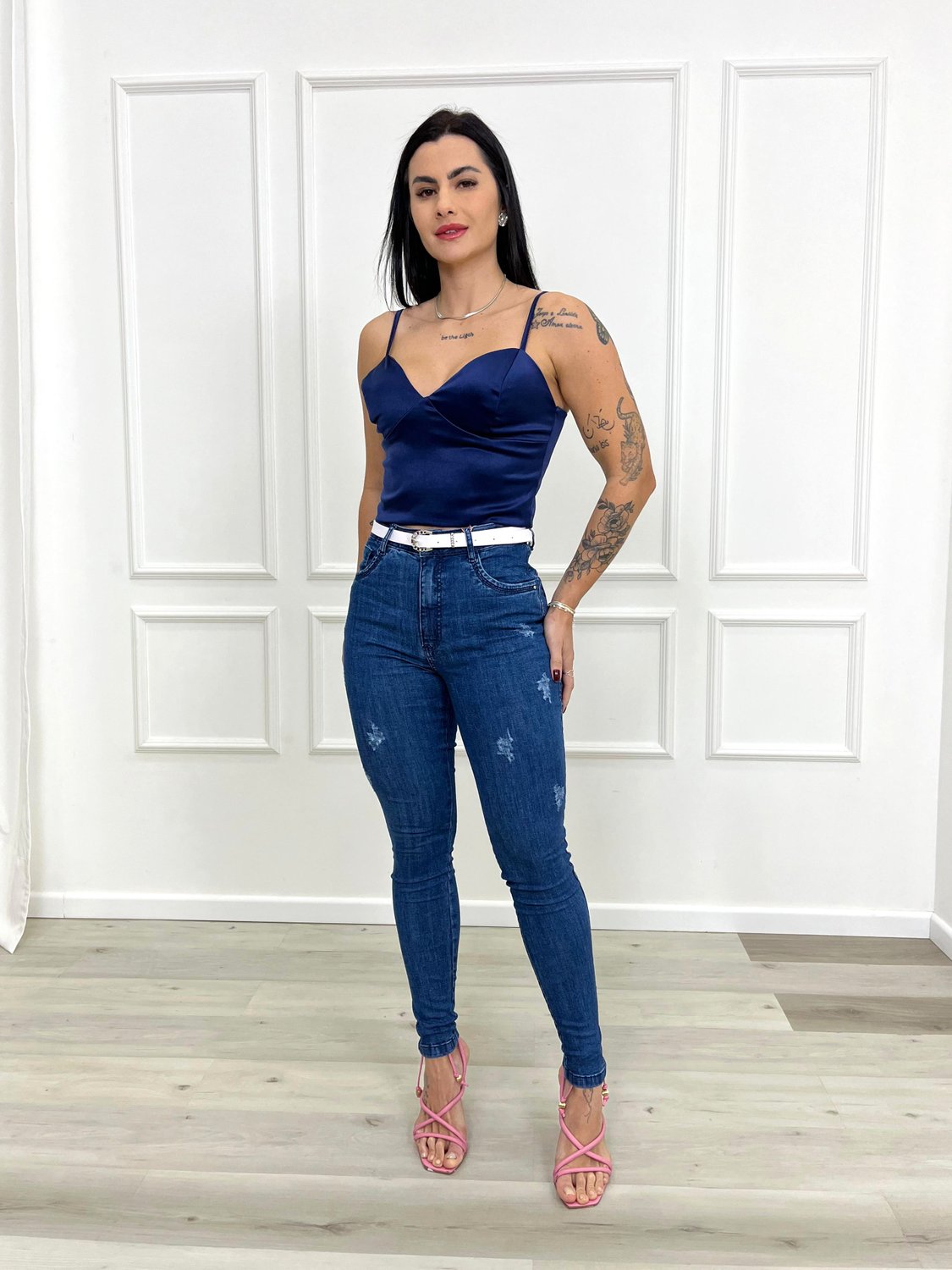 A calça se destaca pela sua modelagem justa e elegante, que valoriza as curvas naturais do corpo, proporcionando um caimento impecável. Sua silhueta afunilada cria um visual moderno e sofisticado, perfeito para diversas ocasiões. O charme da calça cigarrete está nos detalhes, como as lavagens e os acabamentos. Esses elementos adicionam personalidade e estilo a cada peça, permitindo que você escolha aquela que melhor se adapta ao seu gosto. Das opções mais simples às mais elaboradas, a calça cigarrete é versátil e se encaixa perfeitamente em seu estilo pessoal.