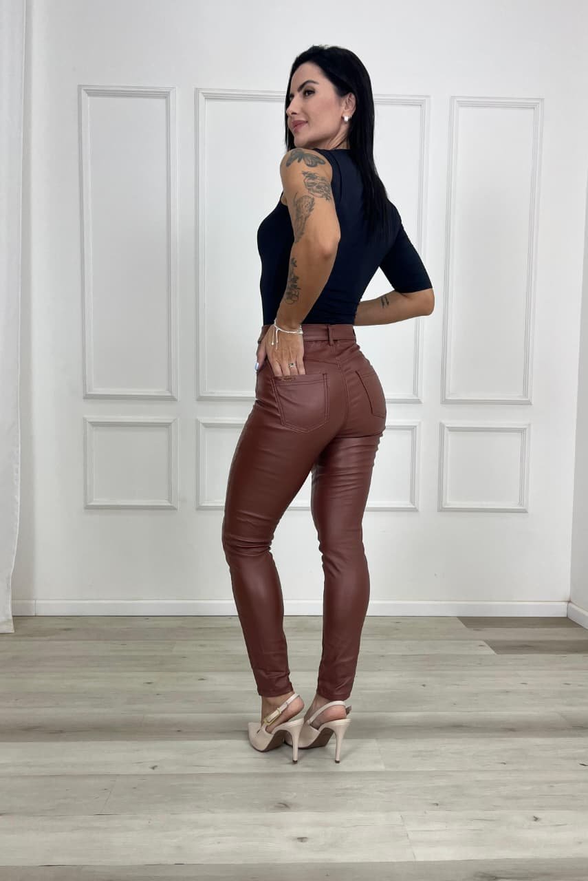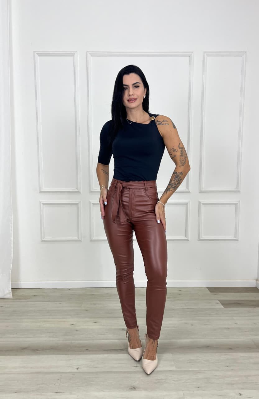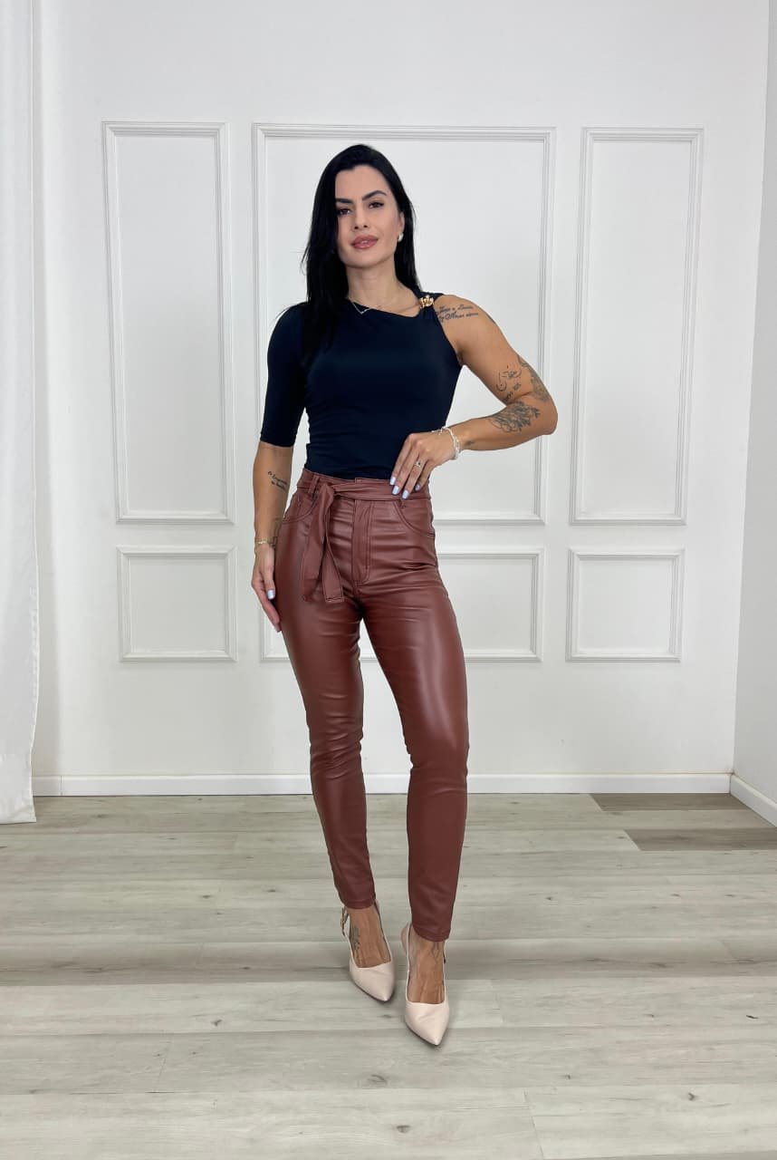 A calça cigarrete é uma peça moderna e elegante, conhecida por sua modelagem ajustada ao corpo e comprimento levemente encurtado, geralmente terminando na altura do tornozelo. Seu corte mais justo valoriza a silhueta, criando um visual alinhado e sofisticado, ideal para quem busca um estilo contemporâneo sem abrir mão do conforto.