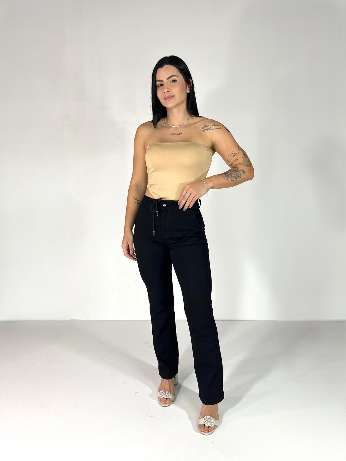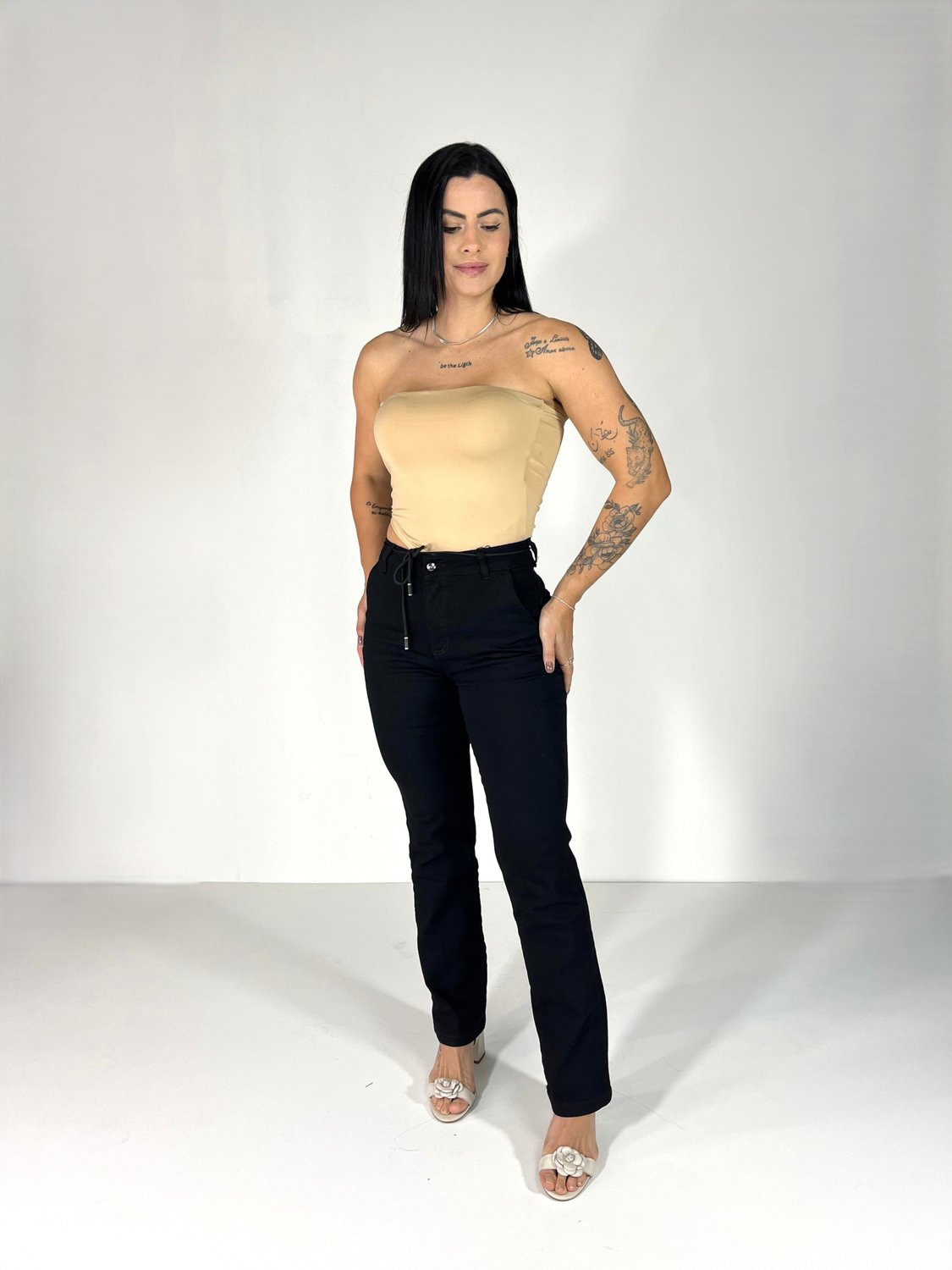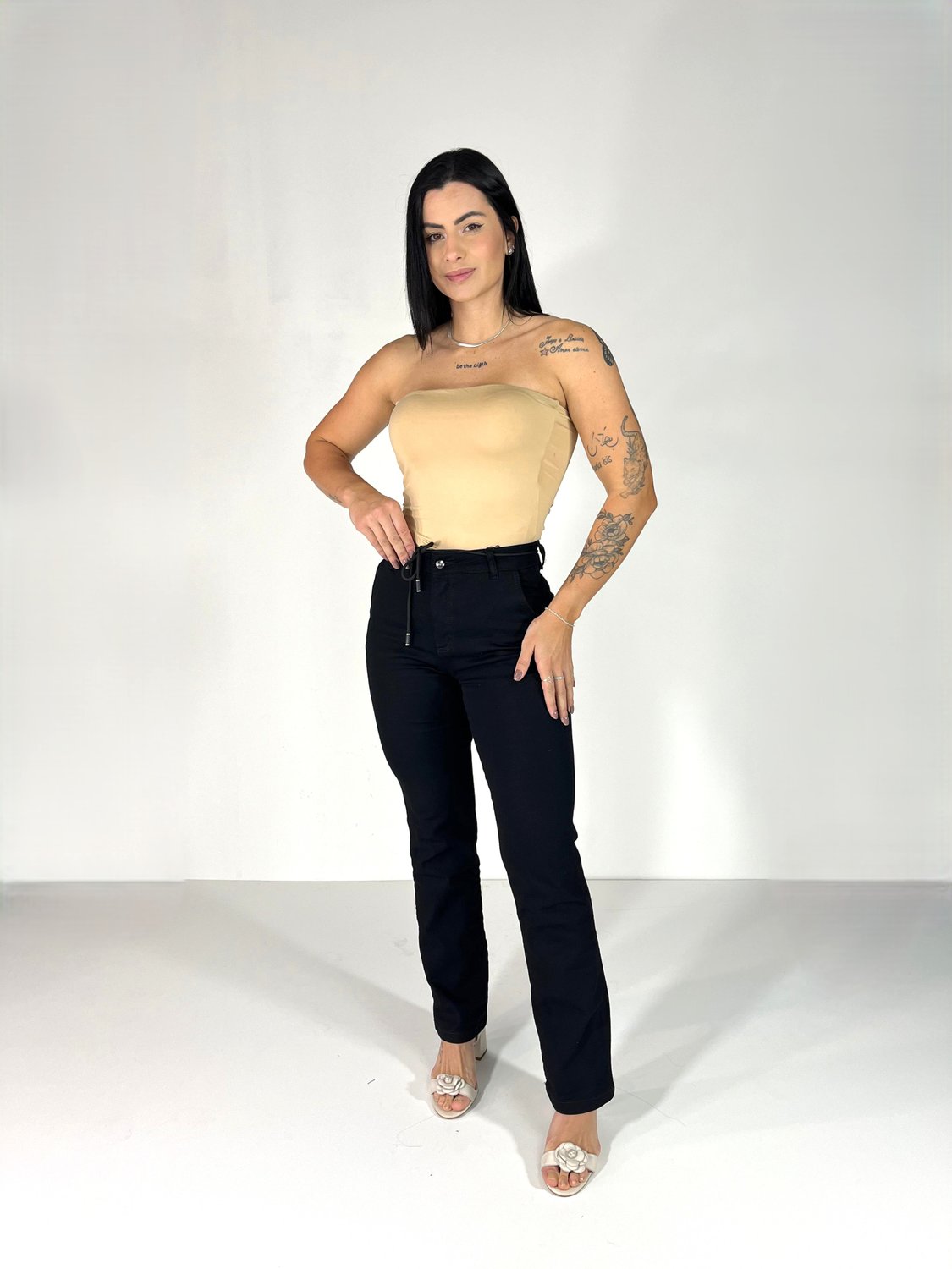 A calça reta é conhecida pelo seu corte reto que se estende da altura do joelho até o pé, proporcionando um visual clássico e atemporal. Essa modelagem é democrática e se adapta a diversas situações, tornando-a uma peça essencial no seu guarda-roupa.