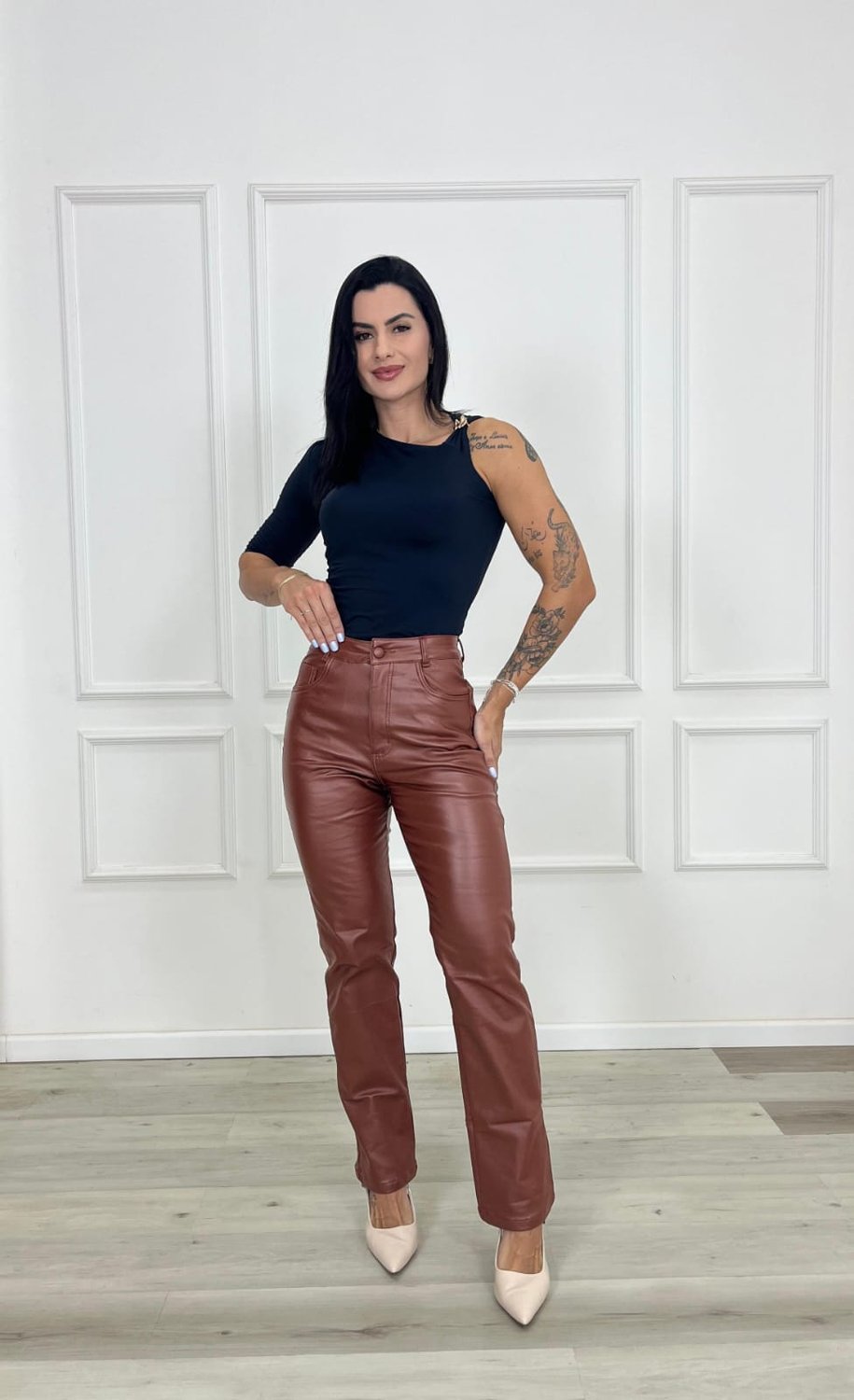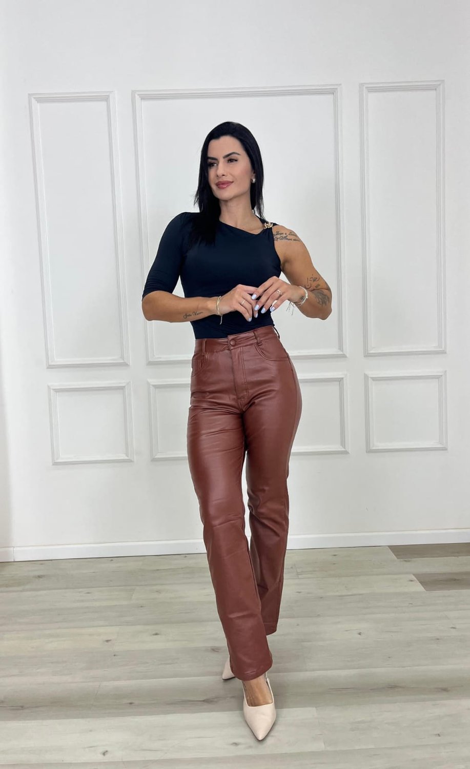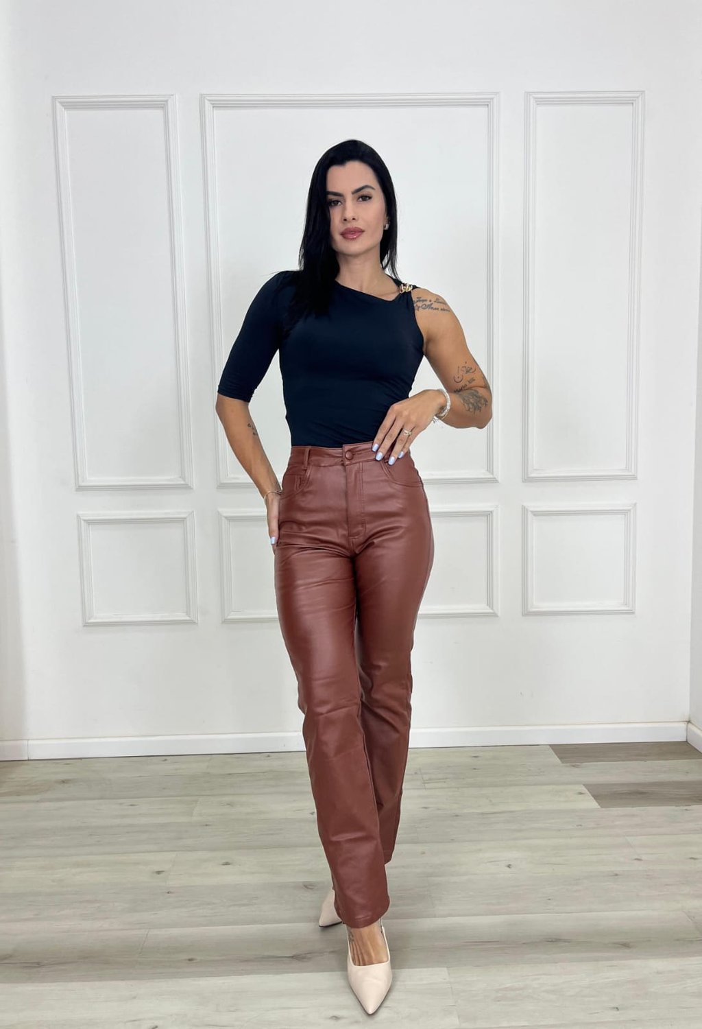 Além de estilosa, a calça de perna reta também oferece conforto, pois não marca excessivamente o corpo e permite liberdade de movimento. É uma escolha democrática e funcional para quem busca praticidade no guarda-roupa, sem abrir mão de elegância e modernidade.