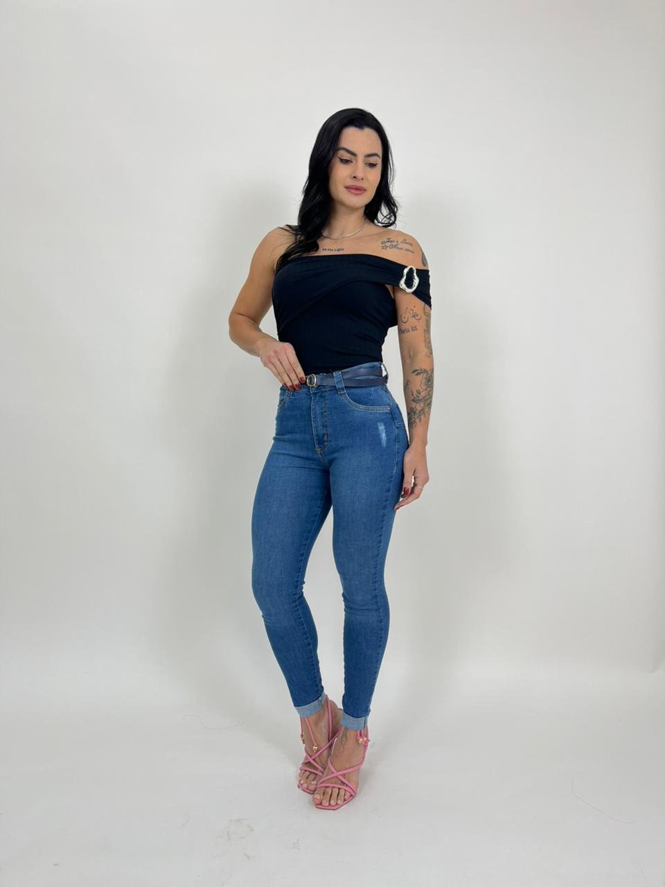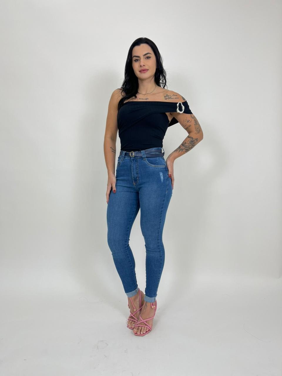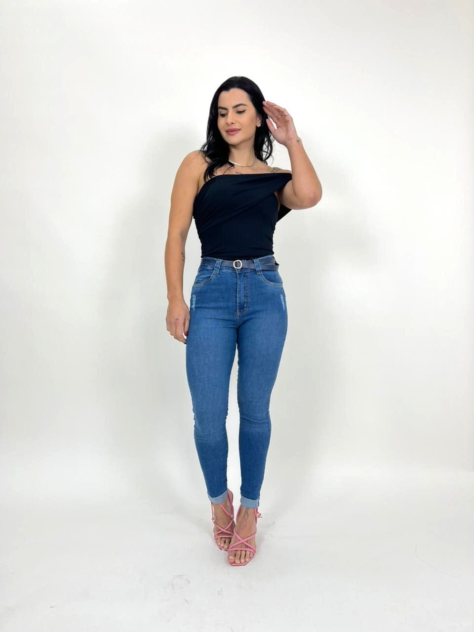Calça Skinny Jeans Barra Dobrada E Cinto