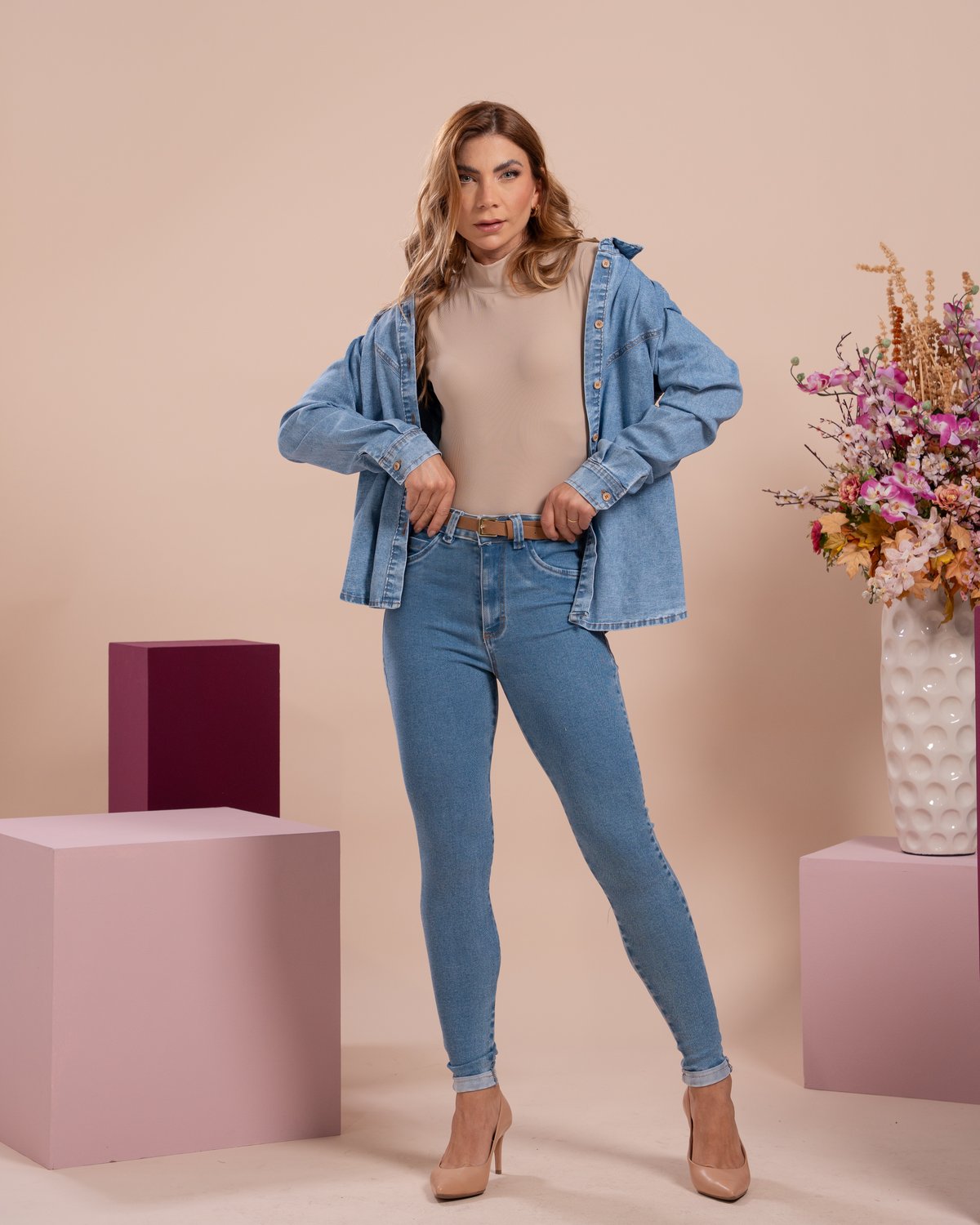 Skinny jeans são calças confeccionadas, em geral, em denim com mistura de algodão e elastano, desenvolvidas para se ajustar de forma precisa ao corpo, acompanhando o contorno das pernas desde a cintura até a barra. Seu principal diferencial é o caimento justo, que valoriza a silhueta e proporciona um visual moderno, urbano e versátil.