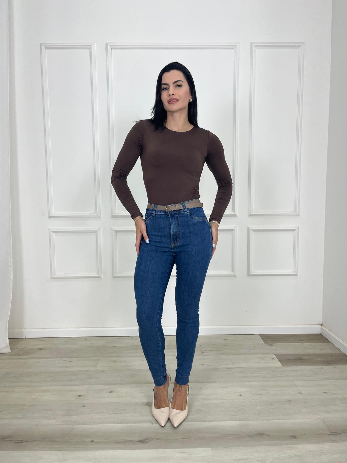 Além de estilosa, a calça skinny é uma escolha atemporal, perfeita para quem busca conforto, praticidade e um visual contemporâneo que realça a forma natural do corpo.