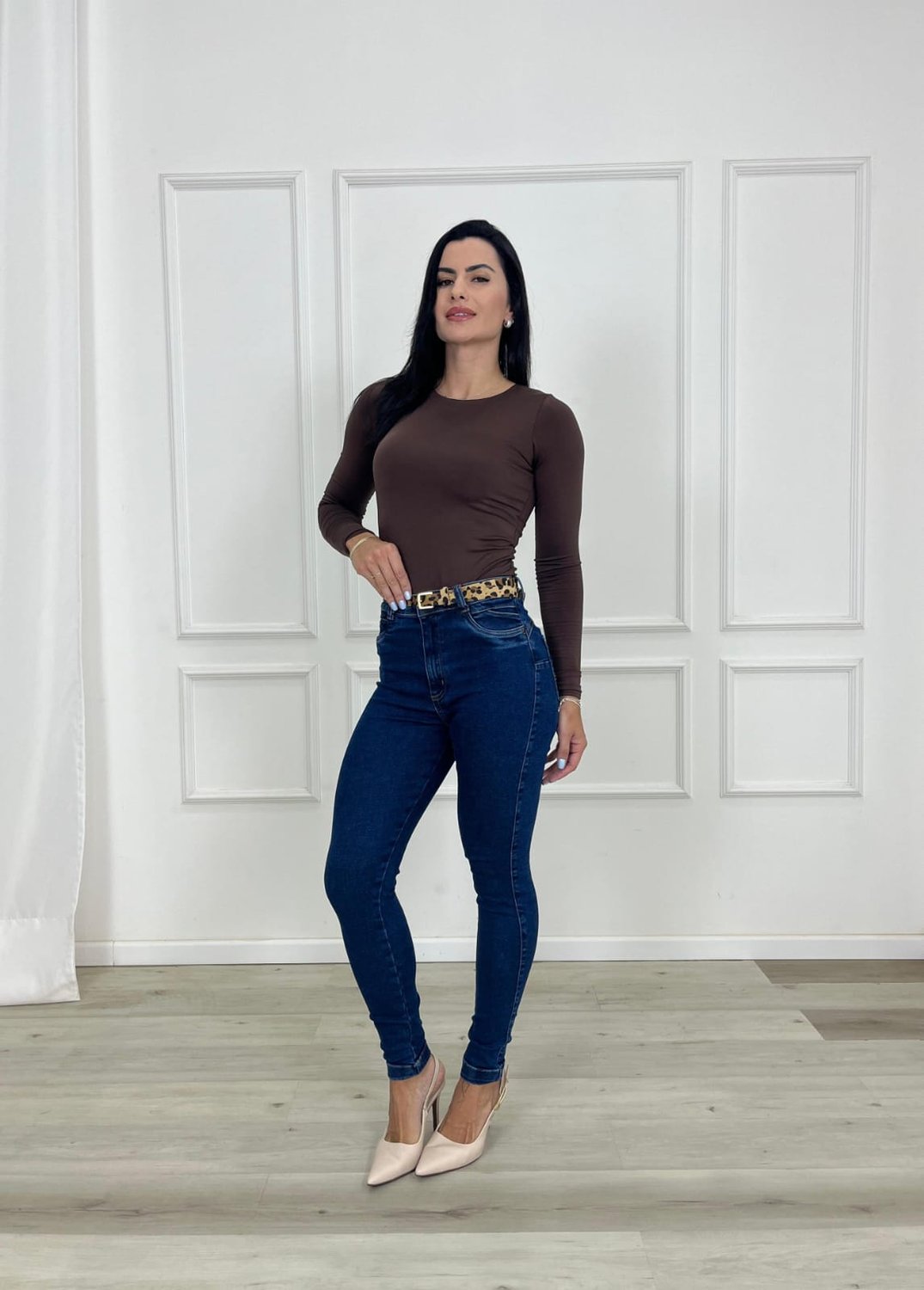 Além de estilosa, a calça skinny é uma escolha atemporal, perfeita para quem busca conforto, praticidade e um visual contemporâneo que realça a forma natural do corpo.