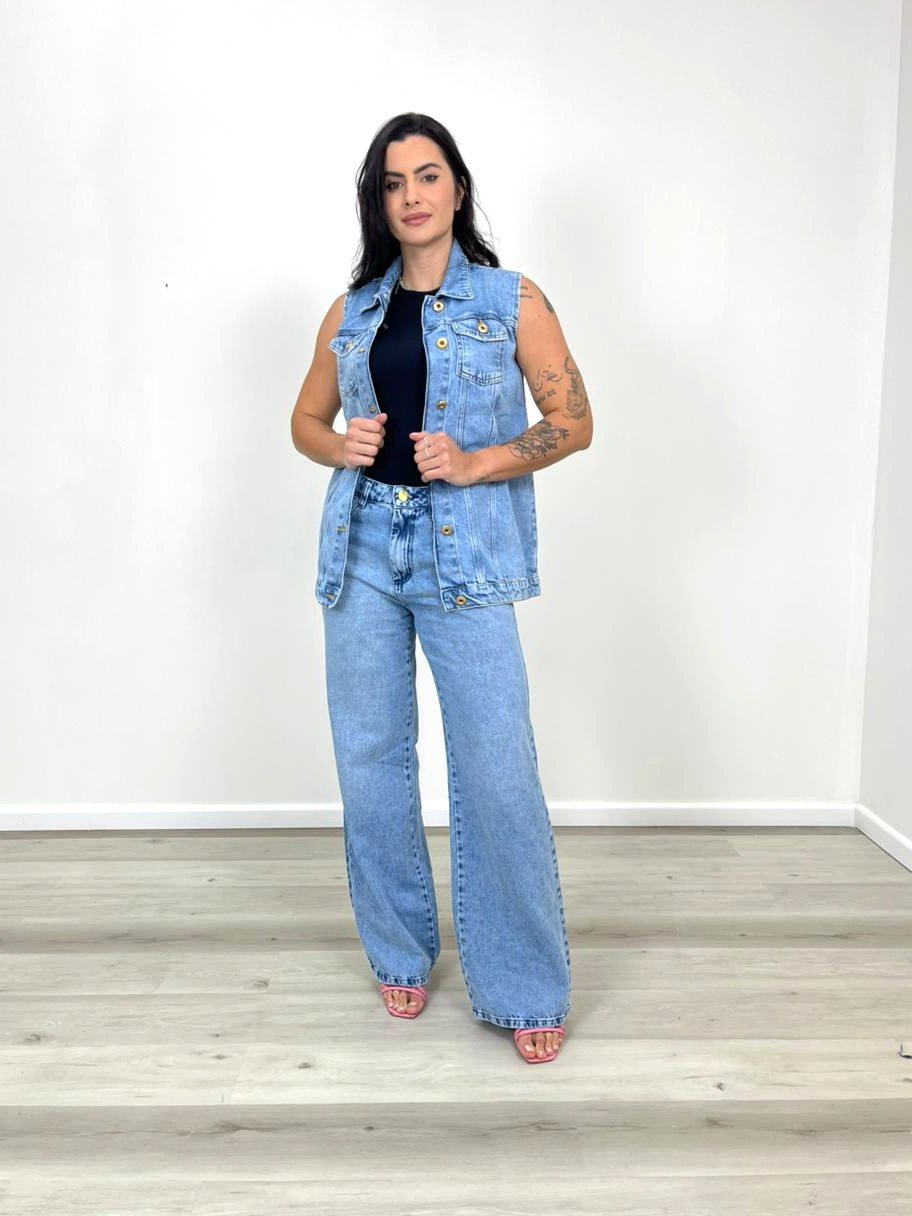 Calça Wide Leg Jeans 100% Barra Tradicional