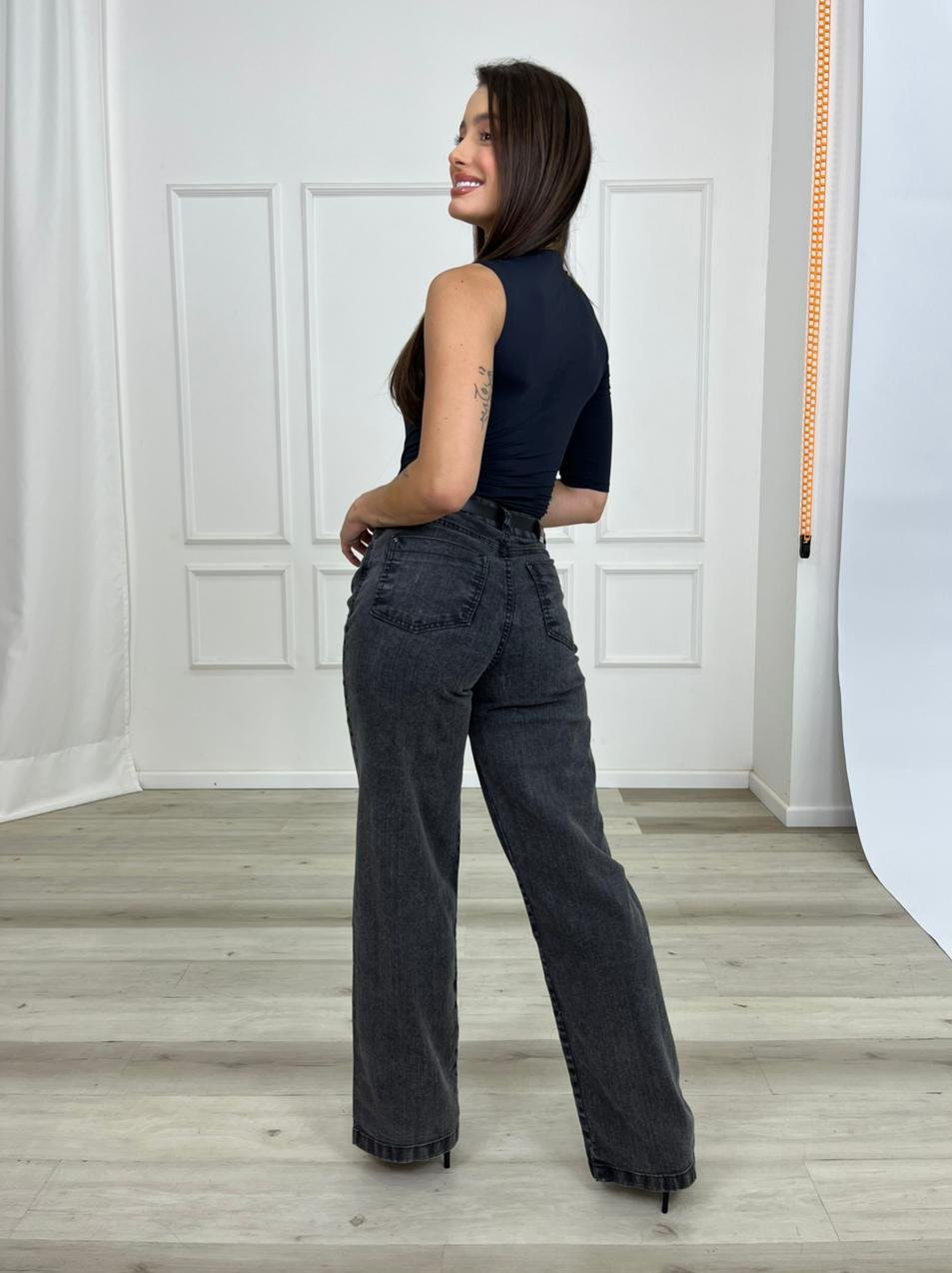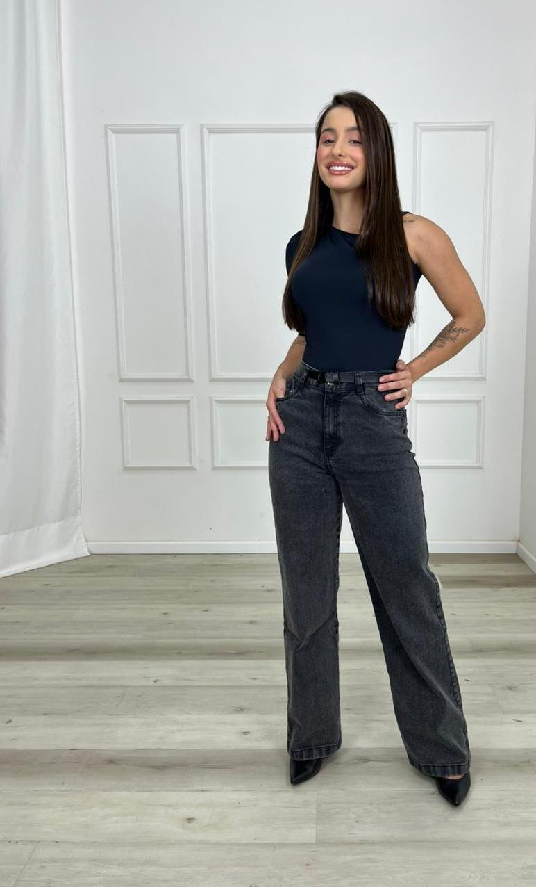 Muito associada a uma estética contemporânea e sofisticada, a wide leg valoriza diferentes tipos de corpo, ajudando a alongar a silhueta — especialmente quando usada com cintura alta. Seu corte mais estruturado traz equilíbrio ao visual, sendo ideal tanto para produções casuais quanto para combinações mais refinadas.