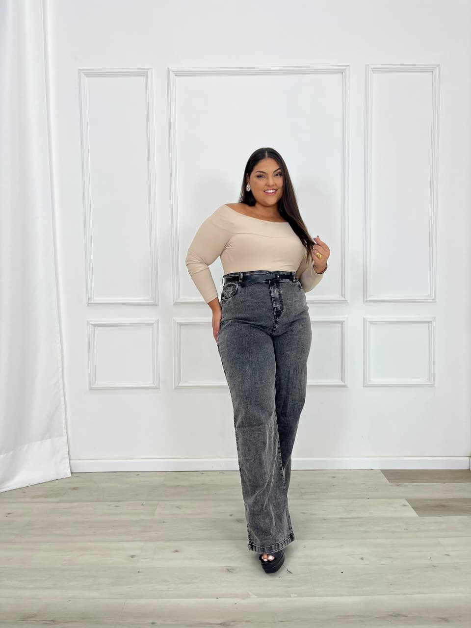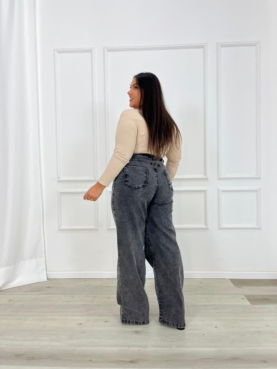 A calça jeans wide leg é sinônimo de estilo contemporâneo aliado ao máximo conforto. Caracterizada por sua modelagem ampla desde o quadril até a barra, ela possui pernas largas e retas que criam um visual marcante, elegante e cheio de personalidade. Diferente de outros cortes, o wide leg não afunila nem ajusta ao corpo, proporcionando um caimento solto e fluido que valoriza diversos tipos de silhueta.