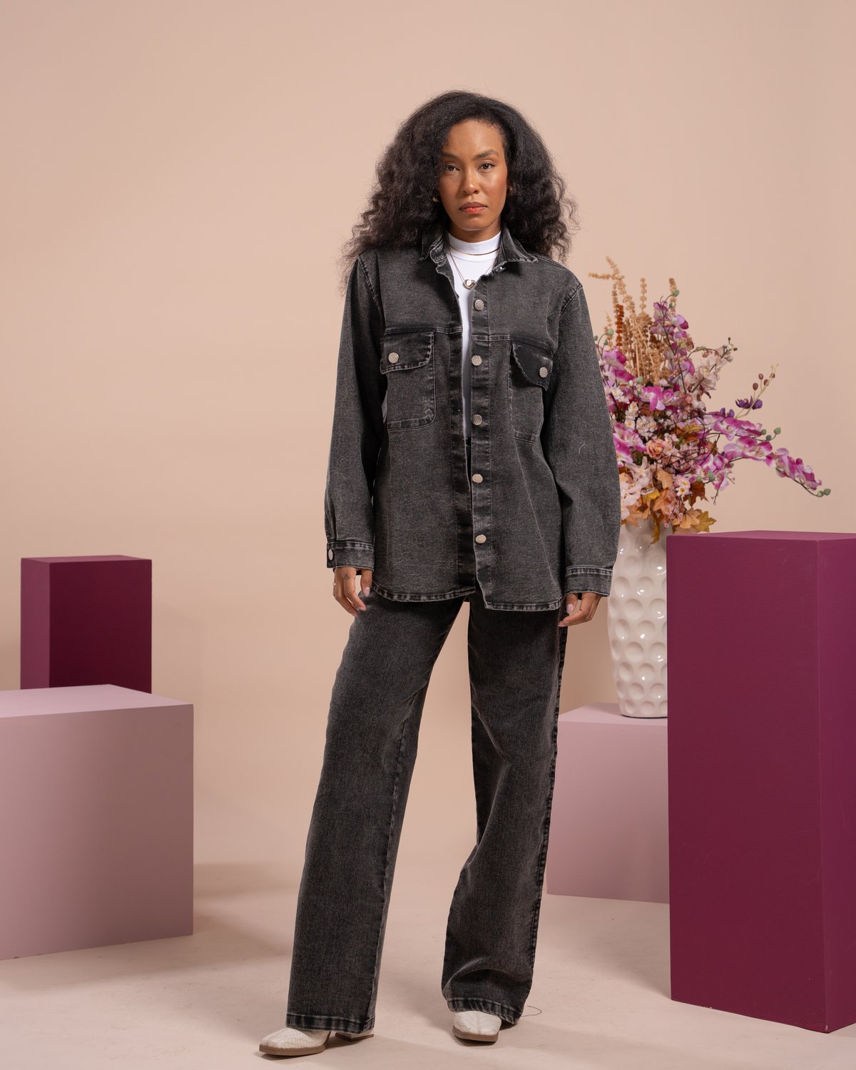 Com modelagem que equilibra conforto e estilo, a camisa pode apresentar manga longa com opção de ajuste por botão, colarinho tradicional e bolsos frontais funcionais, trazendo um ar casual e sofisticado ao mesmo tempo. O jeans permite fácil combinação com diversas peças, como calças, saias, shorts ou até sobreposições com vestidos, adaptando-se a diferentes ocasiões — do dia a dia ao happy hour.