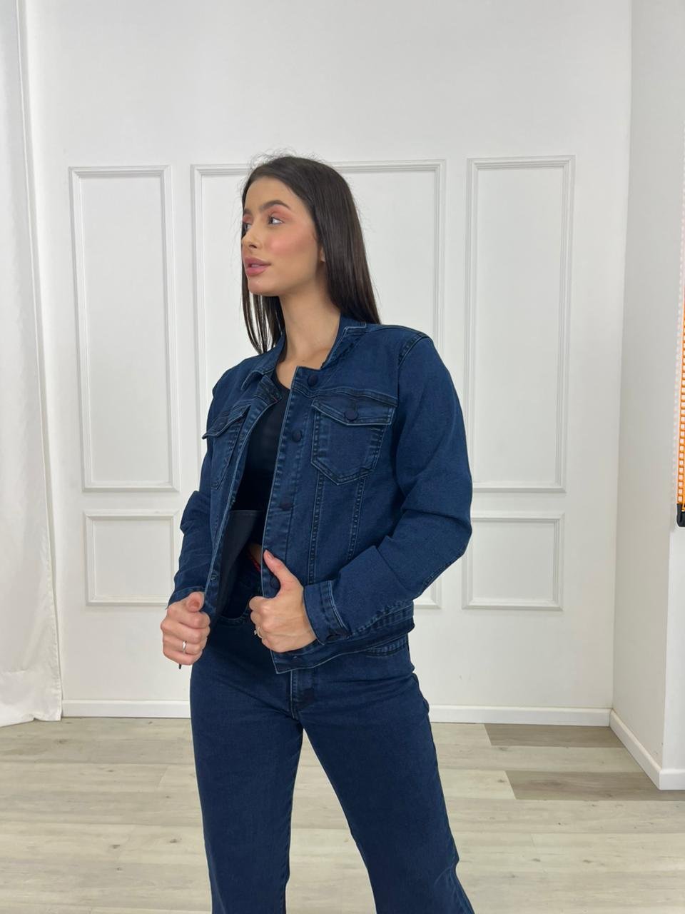 Extremamente versátil, a jaqueta jeans pode ser usada em diversas combinações. Fica perfeita com calças jeans, leggings, vestidos, saias ou shorts, criando looks modernos e despojados. Também funciona muito bem como sobreposição em dias mais frescos, sendo ideal para usar com camisetas, blusas ou croppeds.