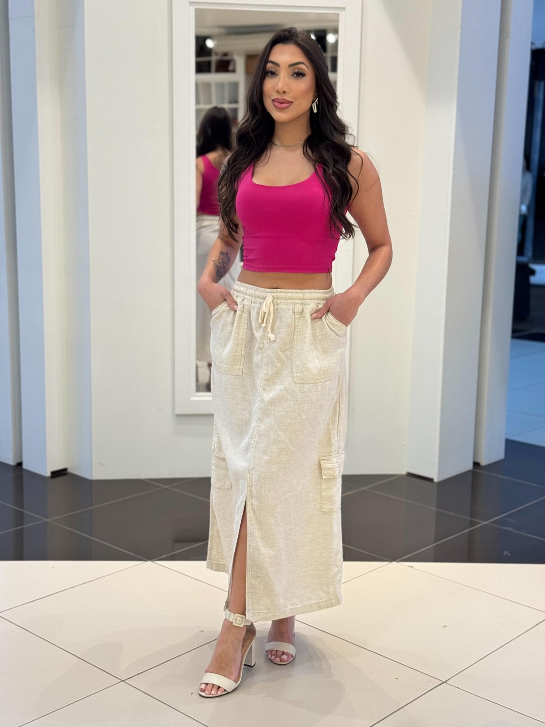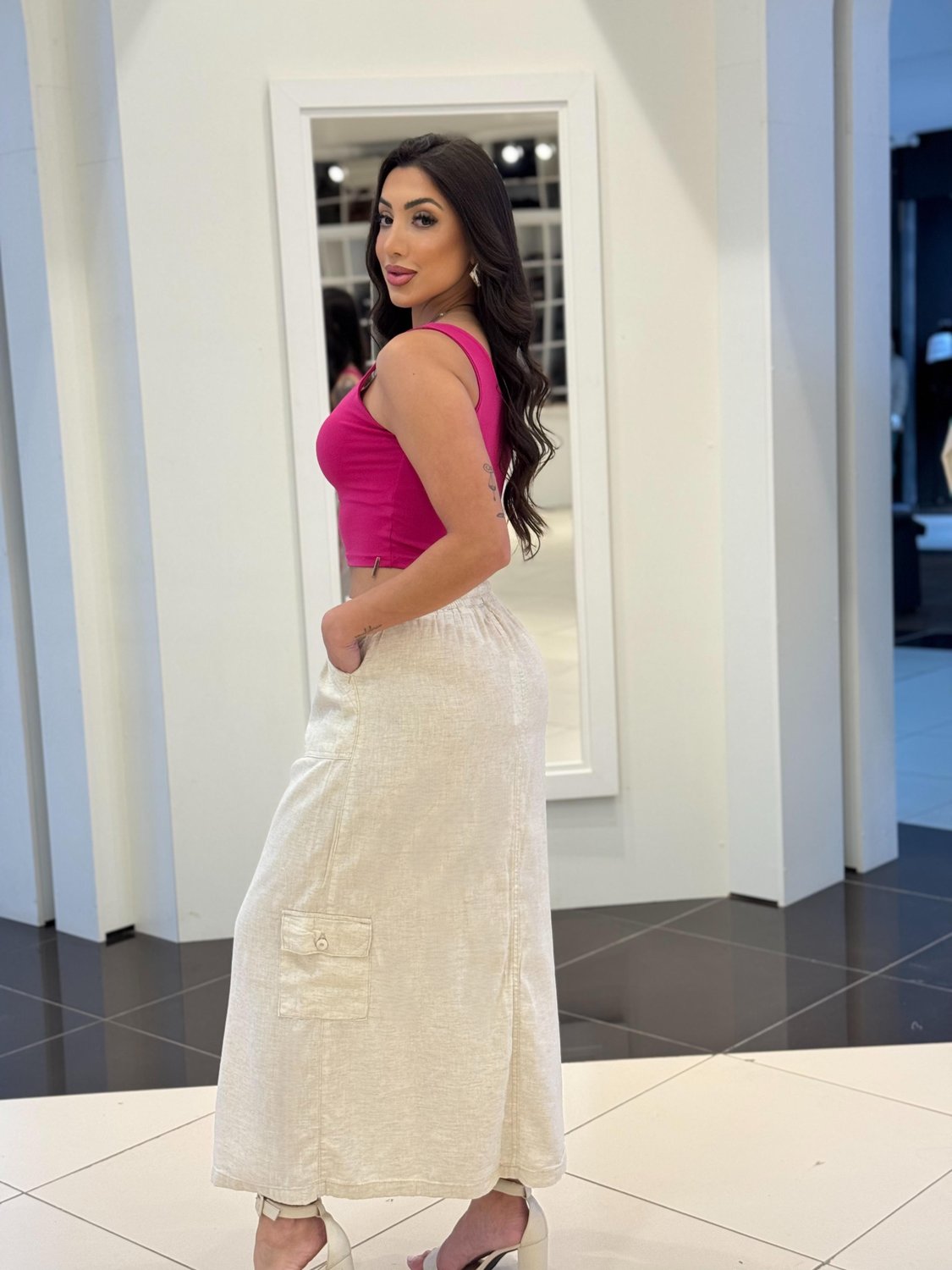 A saia é a peça chave para quem adora um look casual e cheio de personalidade. Com o estilo atemporal do jeans, ela oferece versatilidade para compor diferentes combinações, do visual descomplicado ao mais sofisticado, dependendo da ocasião. Perfeita para o dia a dia, a saia jeans traz conforto e praticidade, sendo ideal para passeios, encontros informais ou até mesmo para um dia de trabalho com estilo.